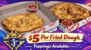 The Knights of Columbus will be having their Lenten Fried Dough Friday sale starting February 20th until March 27th. It will be drive up at Our Lady of Mount Carmel Church parking lot between 4:00 pm – 6:30 pm.